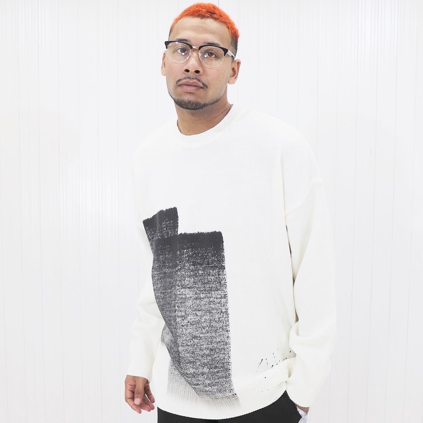 PAINT KNIT CREW【WHITE】